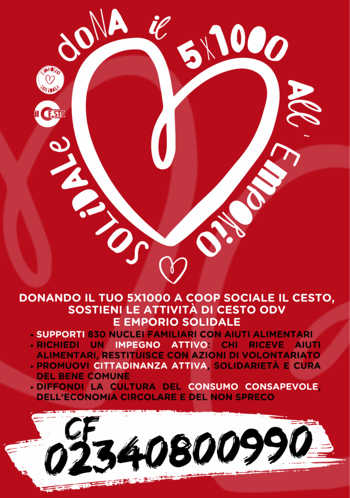 Firmare nel primo riquadro dedicato al “Sostegno degli Enti del Terzo settore iscritti nel RUNTS” e sotto la tua firma inserire il codice fiscale del Cesto 02340800990.