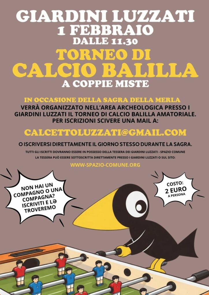 In occasione della Sagra della Merla ci sarà anche il nuovo torneo Calciobalilla dei Luzzati.